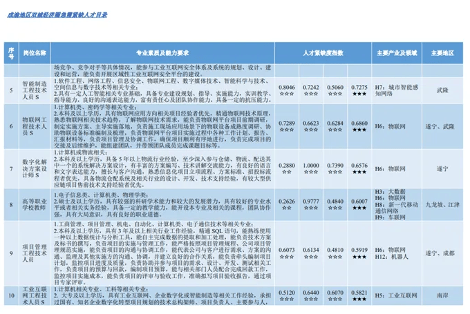 按照成渝地域双城经济圈急需紧缺人才目次,现代办事业、现代高效特色农业、生物医药和大健康三大财产集群人才需求最为兴旺。飞翔器设想工程手艺、计谋规划取办理工程手艺、医学研究、人工智能工程手艺等岗亭人才紧缺。机械设想制制及其从动化、计较机类、化学工程取工艺、电气工程及其从动化等学科人才十分紧缺。部门省份的人才紧缺目次还标注了人才需求专业正在省表里的院校分布环境,更便于身处该地域或成心愿到该地域成长的同窗进行院校专业的选择。例如云南省的紧缺人才地图,列出了云南省沉点财产涉及专业省内高校分布环境,包罗沉点财产需求专业、结业生人数、生源分布院校等。